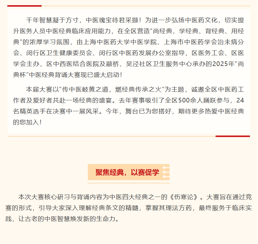 传中医岐黄之道,燃经典传承之火——2025闵行区“尚典杯”中医经典背诵大赛盛大开启,线上答题火热进行中!